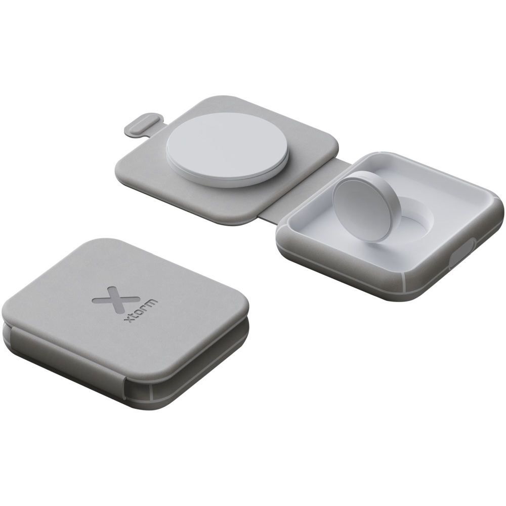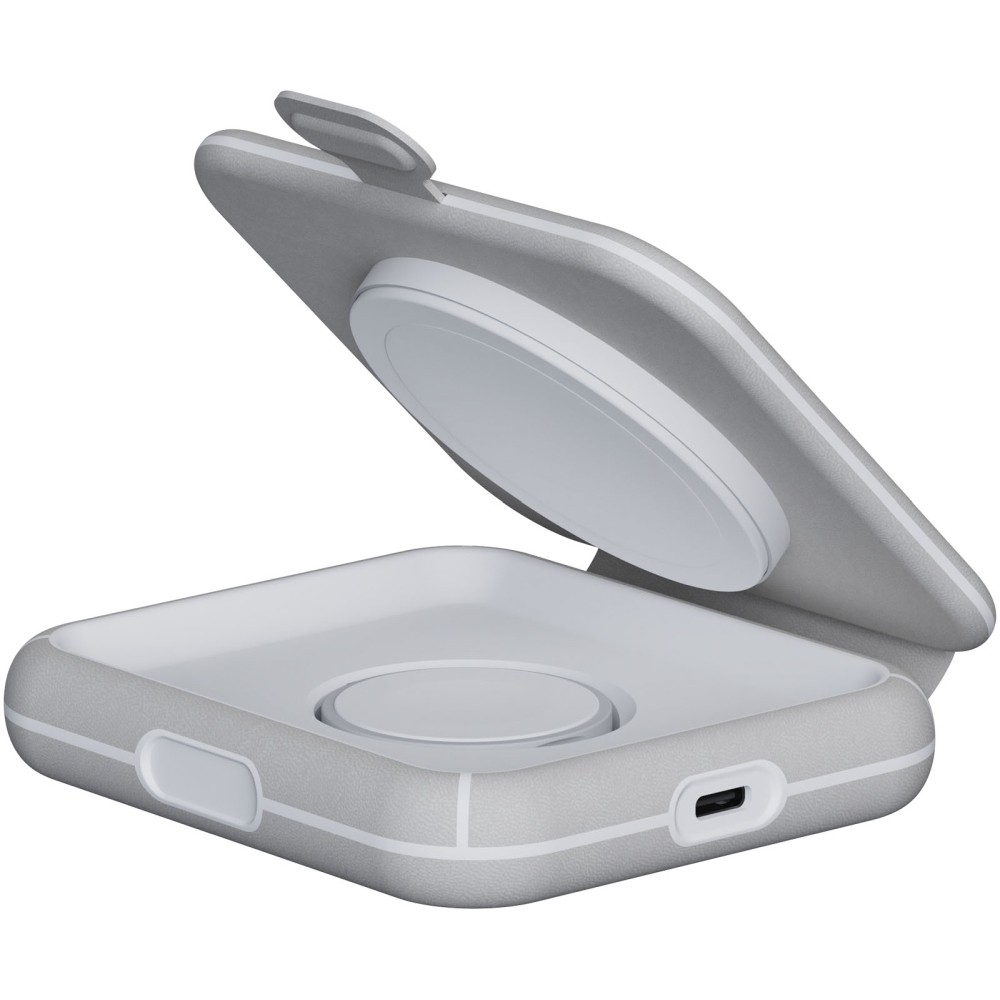 S touto kompaktní, skládací a elegantní bezdrátovou magnetickou cestovní nabíječkou můžete nabíjet svůj iPhone a Apple Watch současně! Ideální pro nabíjení doma, v kanceláři nebo během noční cesty. Obsahuje 1 magnetickou bezdrátovou nabíjecí podložku (15 W) a 1 nabíječku pro iWatch (3 W). Vstup: Napájení USB-C 27 W. Dodáváno s metrovým napájecím kabelem USB-C a uživatelskou příručkou. Rozměry: 9,4 x 2,1 x 8,2 cm