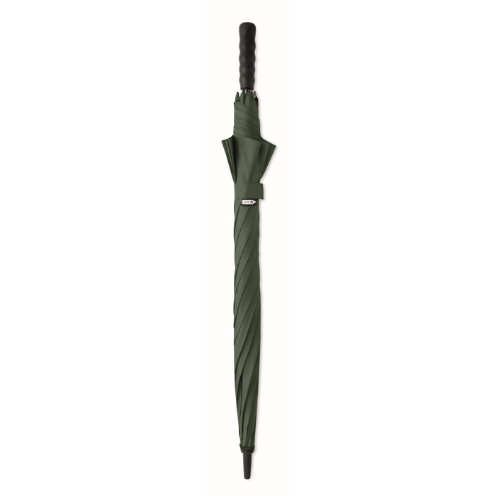 27palcový větruodolný deštník z 190T RPET pongee s automatickým otvíráním. Sklolaminátový tyč a žebra. Rukojeť z recyklované pšeničné slámy a ABS. Plastové špičky a horní část. Rozměry: 116 cm