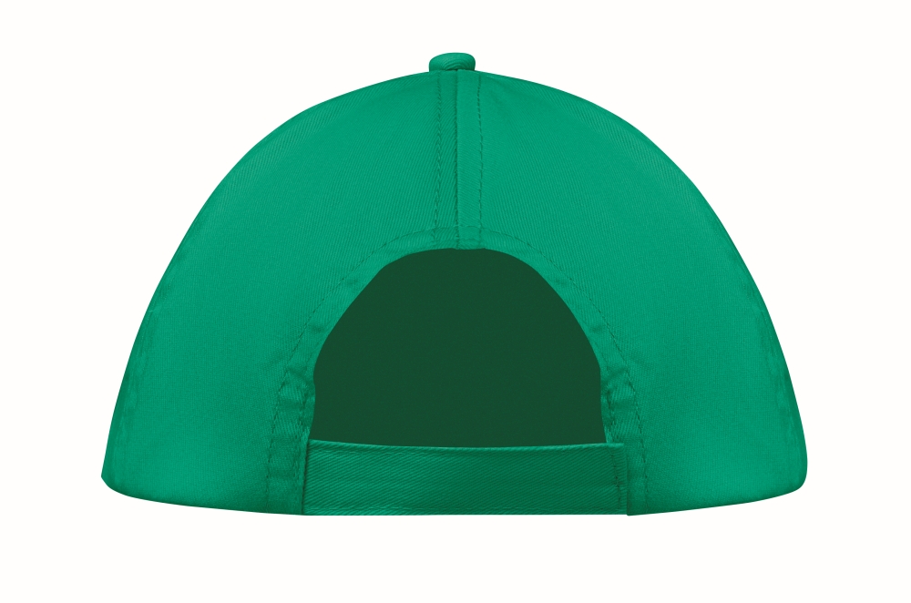 Pětipanelová baseballová čepice z bavlněného kepru 150 gr/m2 s nastavitelným zapínáním na suchý zip a 2 vyšívanými očky ve stejné barvě. Velikost 7 1/4. Rozměry: 25 x 16 x 15 cm