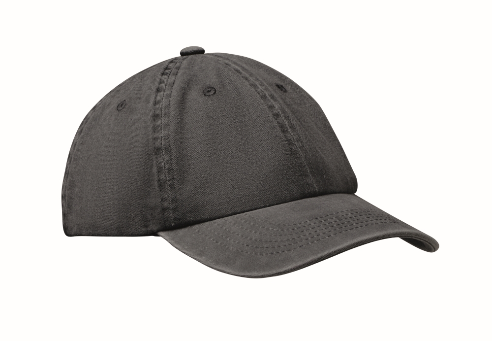 Šestipanelová baseballová čepice z prané 265g bavlny s vintagevzhledem. S nastavitelným zapínáním na suchý zip. Šest prošitých oček. Velikost 7 1/4. Rozměry: 21 x 16 x 11 cm