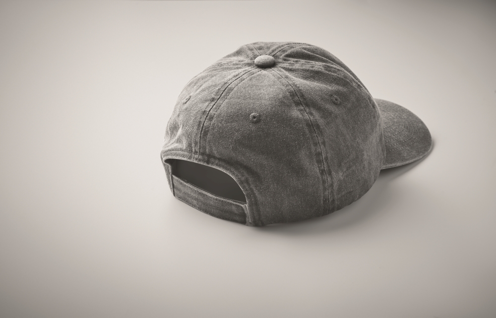 Šestipanelová baseballová čepice z prané 265g bavlny s vintagevzhledem. S nastavitelným zapínáním na suchý zip. Šest prošitých oček. Velikost 7 1/4. Rozměry: 21 x 16 x 11 cm