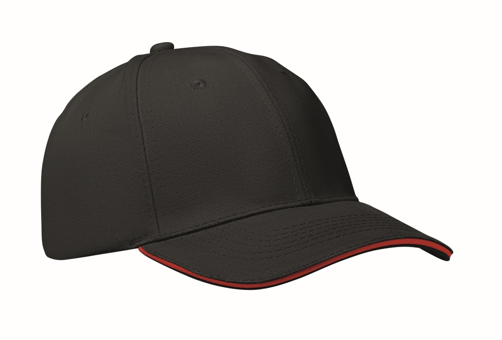 Šestipanelová baseballová kšiltovka, černá/červená