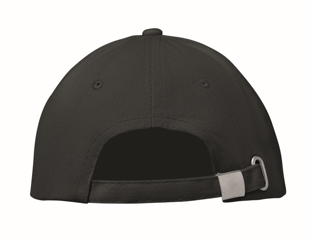 Šestipanelová baseballová čepice z broušené bavlny 260 gr/m2 se stříbrnou ocelovou sponou a 6 vyšívanými očky ve stejné barvě. Velikost 7 1/4. Rozměry: 21 x 17 x 11 cm