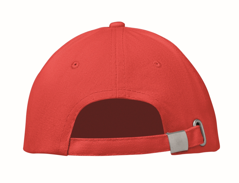 Šestipanelová baseballová čepice z broušené bavlny 260 gr/m2 se stříbrnou ocelovou sponou a 6 vyšívanými očky ve stejné barvě. Velikost 7 1/4. Rozměry: 21 x 17 x 11 cm