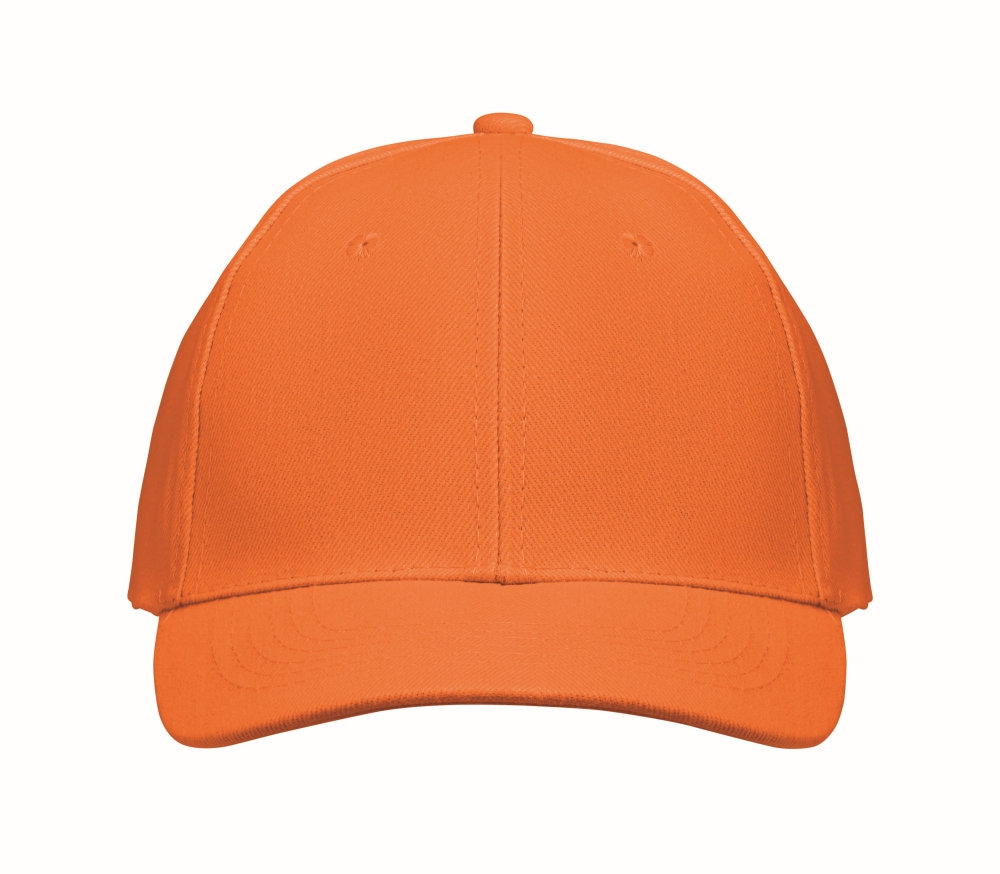 Šestipanelová baseballová čepice z broušené bavlny 260 gr/m2 se stříbrnou ocelovou sponou a 6 vyšívanými očky ve stejné barvě. Velikost 7 1/4. Rozměry: 21 x 17 x 11 cm