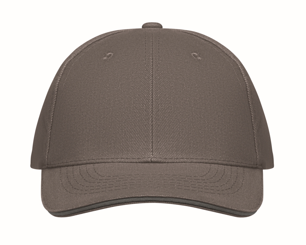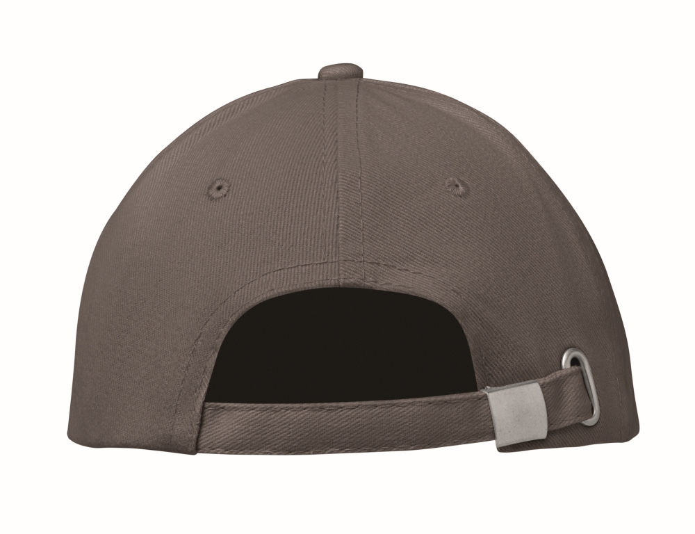 Šestipanelová baseballová čepice z broušené bavlny 260 gr/m2 se stříbrnou ocelovou sponou a 6 vyšívanými očky ve stejné barvě. Velikost 7 1/4. Rozměry: 21 x 17 x 11 cm