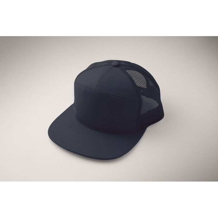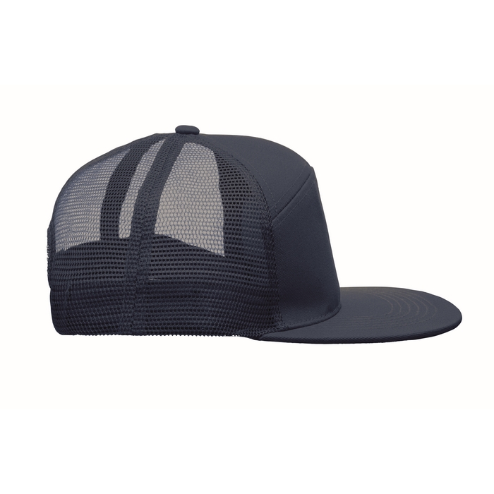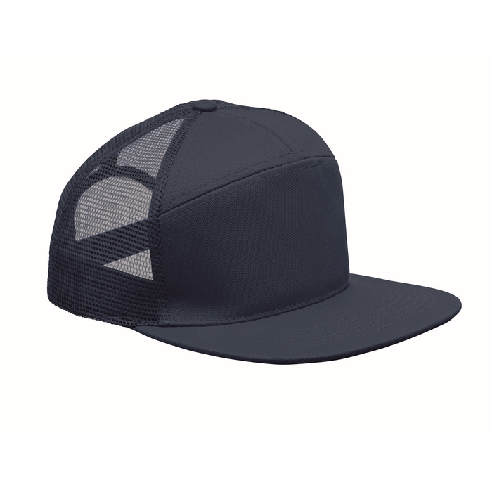 Sedmipanelová kšiltovka s plochým kšiltem z bavlněného 235g kepru s polyesterovou síťovinou na zadní straně a plastovým zapínáním. Rozměry: 22 x 16 x 11.5 cm