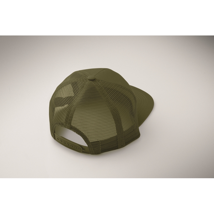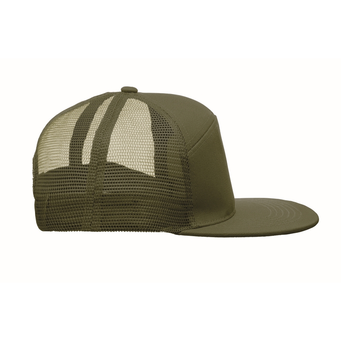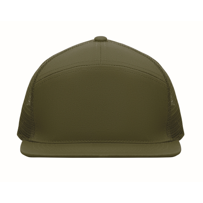 Sedmipanelová kšiltovka s plochým kšiltem z bavlněného 235g kepru s polyesterovou síťovinou na zadní straně a plastovým zapínáním. Rozměry: 22 x 16 x 11.5 cm