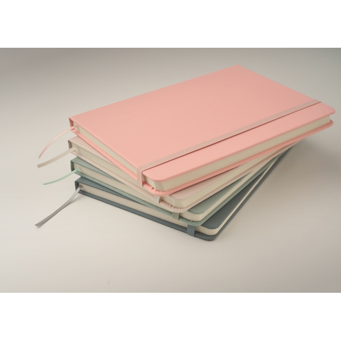 Zápisník A5 v tvrdých deskách s PU přebalem. 192 linkovaných stran (96 listů) recyklovaného papíru. Zavírací gumička a záložka v barvě. FSC®-certified | FSC MIX CREDIT, P7.1, FSC-C213206 Rozměry: 21 x 14 x 1.6 cm