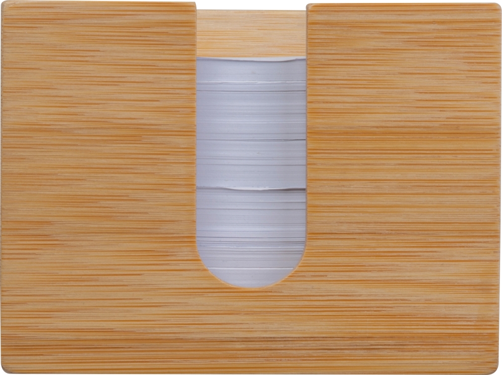 Bambusová krabička na poznámky s približne 700 listami recyklovaného papiera. Praktický kancelársky doplnok s prírodným a moderným vzhľadom Rozměry: 10,8 x 10,8 x 8,1 cm