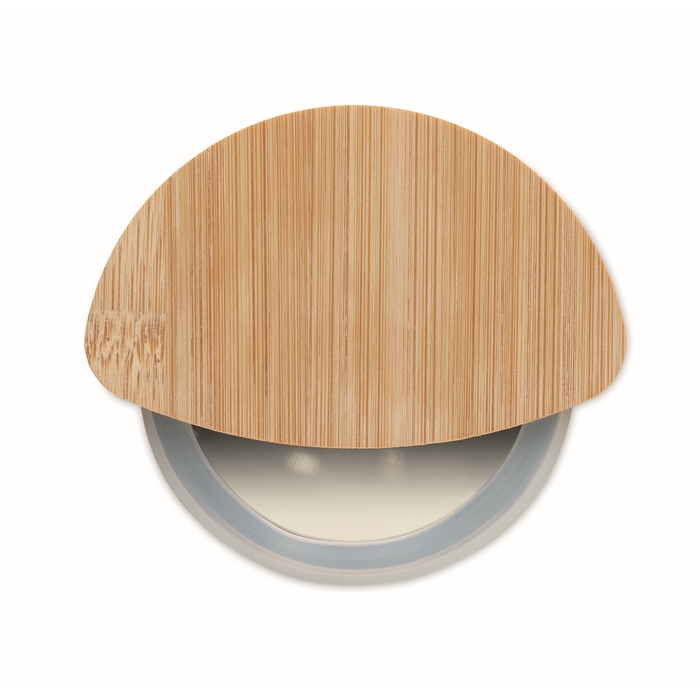 Kulatý kráječ na pizzu s bambusovou rukojetí a čepelí z nerezové oceli. S ochranným kroužkem z průhledného bílého silikonu. Rozměry: 8.5 x 7.7 x 1.2 cm
