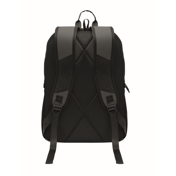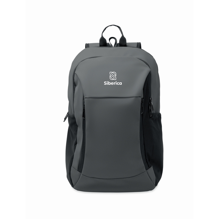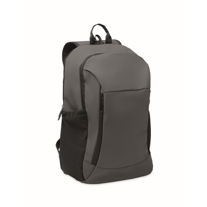 Batoh na 15palcový notebook z měkkého PU s polstrovanými zády a skrytým hlavním prostorem na zip. Jedna přední kapsa na zip, dve přední boční kapsy na zip a 2 boční kapsy z elastické síťoviny. S podšívkou z 210D RPET.Rozměry: 43,5 x 15 x 30cm