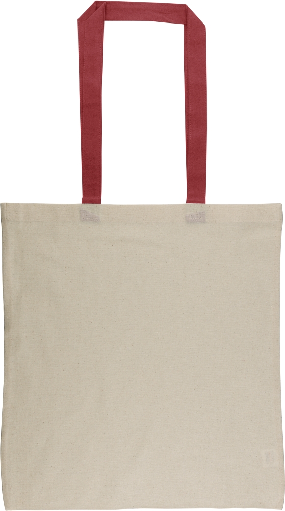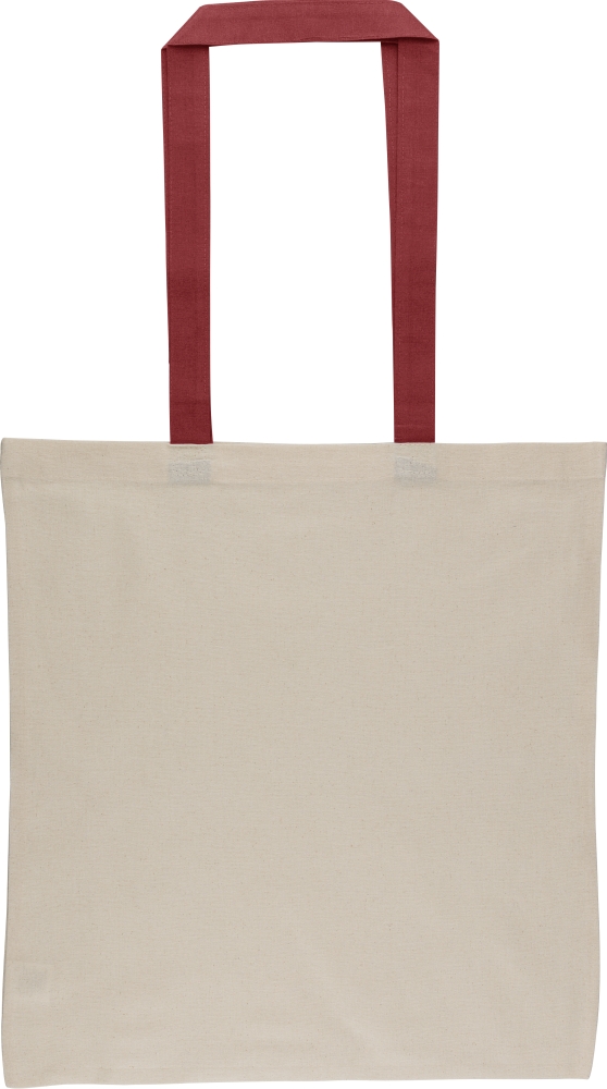 Nákupní taška z bavlny Oeko-Tex® (140 g/m2) v přírodní barvě s barevnými uchy. Rozměr 38 × 42 cm s uchy o délce 70 cm (šířka 2,5 cm). Včetně štítku Oeko-Tex®. Rozměry: 0,2 cm x 38 cm
