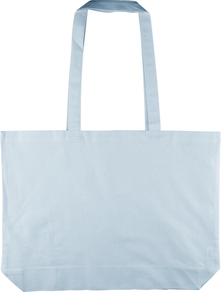 Nákupní taška z bavlny Oeko-Tex® (140 g/m2) s 10cm klínkem a dlouhými uchy (délka 70 cm, šířka 2,5 cm). Pastelově zbarvená bavlna. Včetně štítku Oeko-Tex®. Rozměry: 10 cm x 48 cm