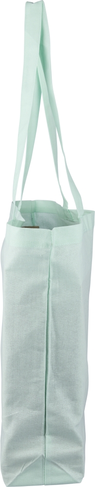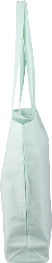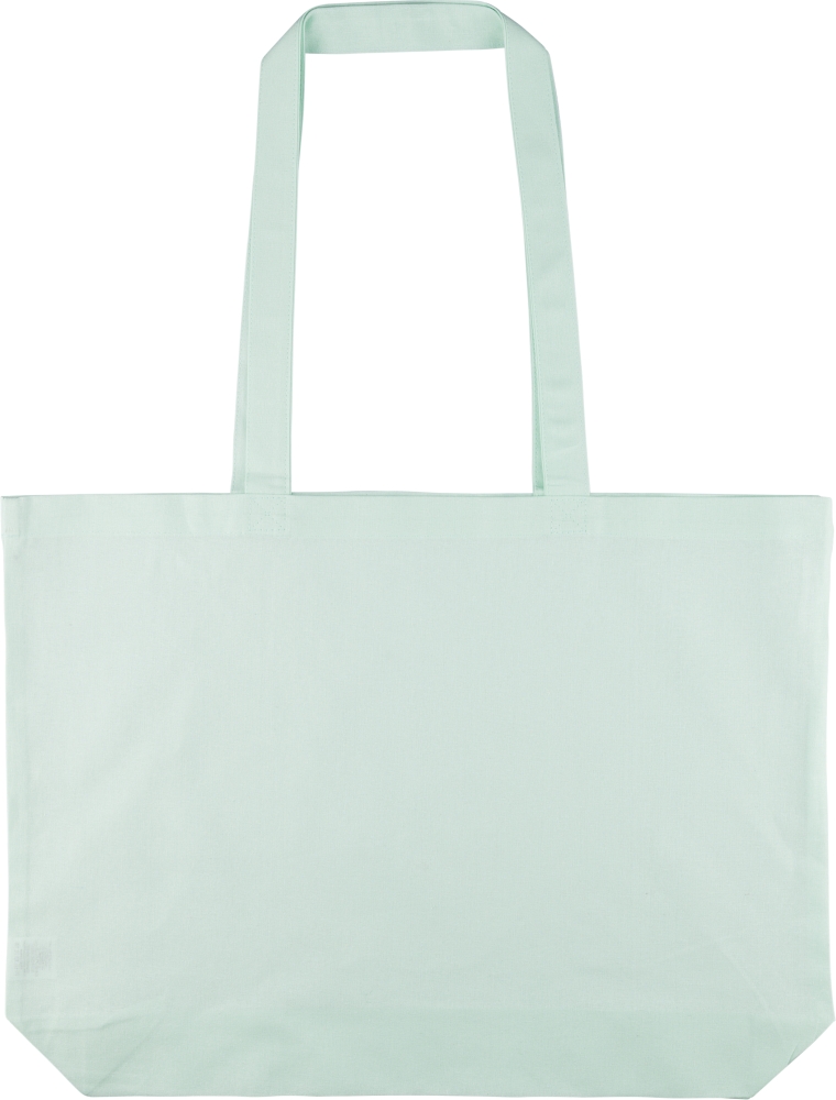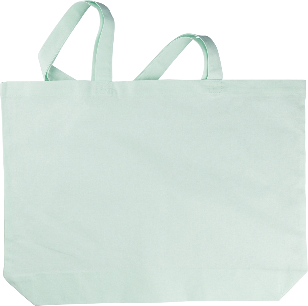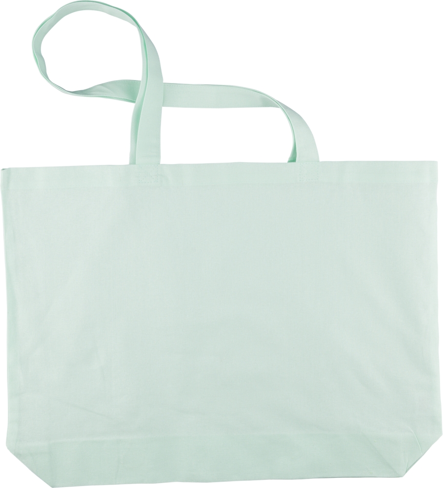 Nákupní taška z bavlny Oeko-Tex® (140 g/m2) s 10cm klínkem a dlouhými uchy (délka 70 cm, šířka 2,5 cm). Pastelově zbarvená bavlna. Včetně štítku Oeko-Tex®. Rozměry: 10 cm x 48 cm