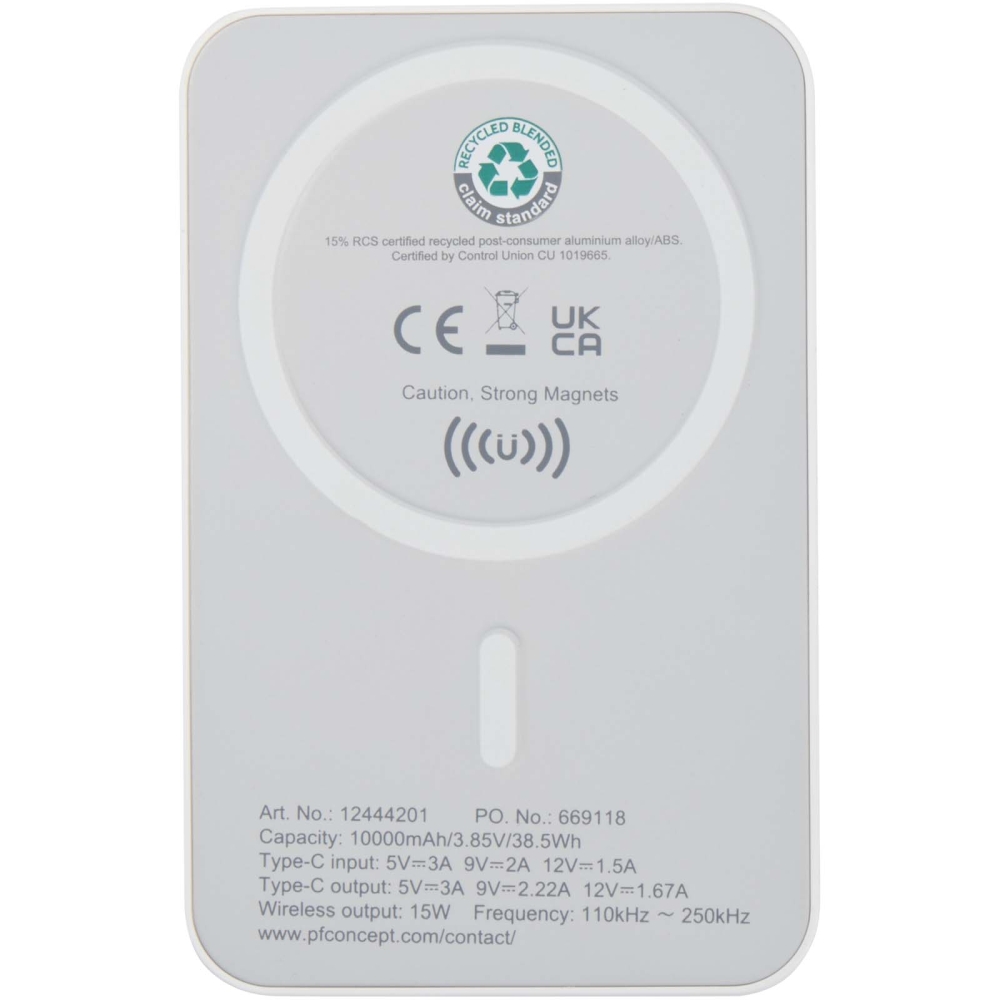 Bezdrátová 15W magnetická powerbanka, 10 000 mAh s 20W PD – vyrobeno z recyklovaného plastu, bílá