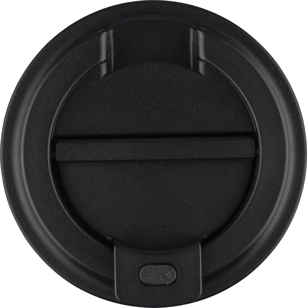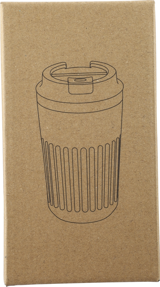Cestovní hrnek z recyklované nerezové oceli (400 ml) s dvojitou stěnou a vnějšími výstupky. S víčkem z PP. Na těle je vyryté logo z recyklované oceli. Baleno v hnědé kartonové krabici. Rozměry: 8,7 cm x 15,6 cm