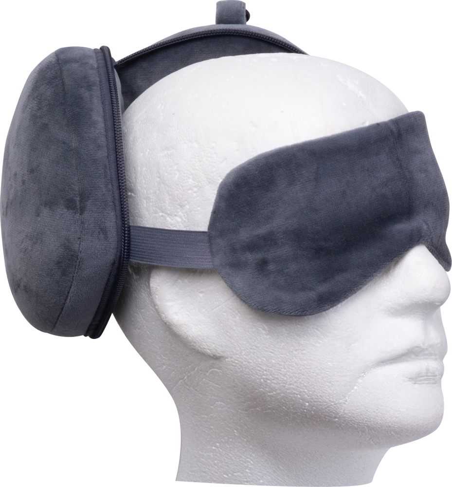 Cestovní sada s maskou na oči a polštářkem. Vyrobená z mikrovlákna. Ideálnípro létání, cestování vlakem nebo autem. Rozměry: o 15,5 x 10 cm