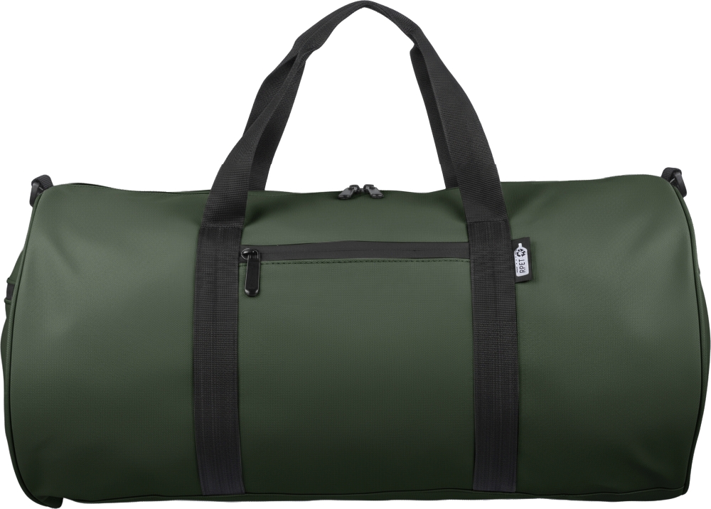 Cestovní taška z rPET polyesteru 600D s podšívkou 210D a vodoodpudivým PU zátěrem. Má hlavní přihrádku o objemu 40 l, přední a boční kapsy na zip, boční síťovanou kapsu, dvě rukojeti a nastavitelný ramenní popruh. Součástí je vnější štítek rPET. Rozměry: 28 cm x 51 cm