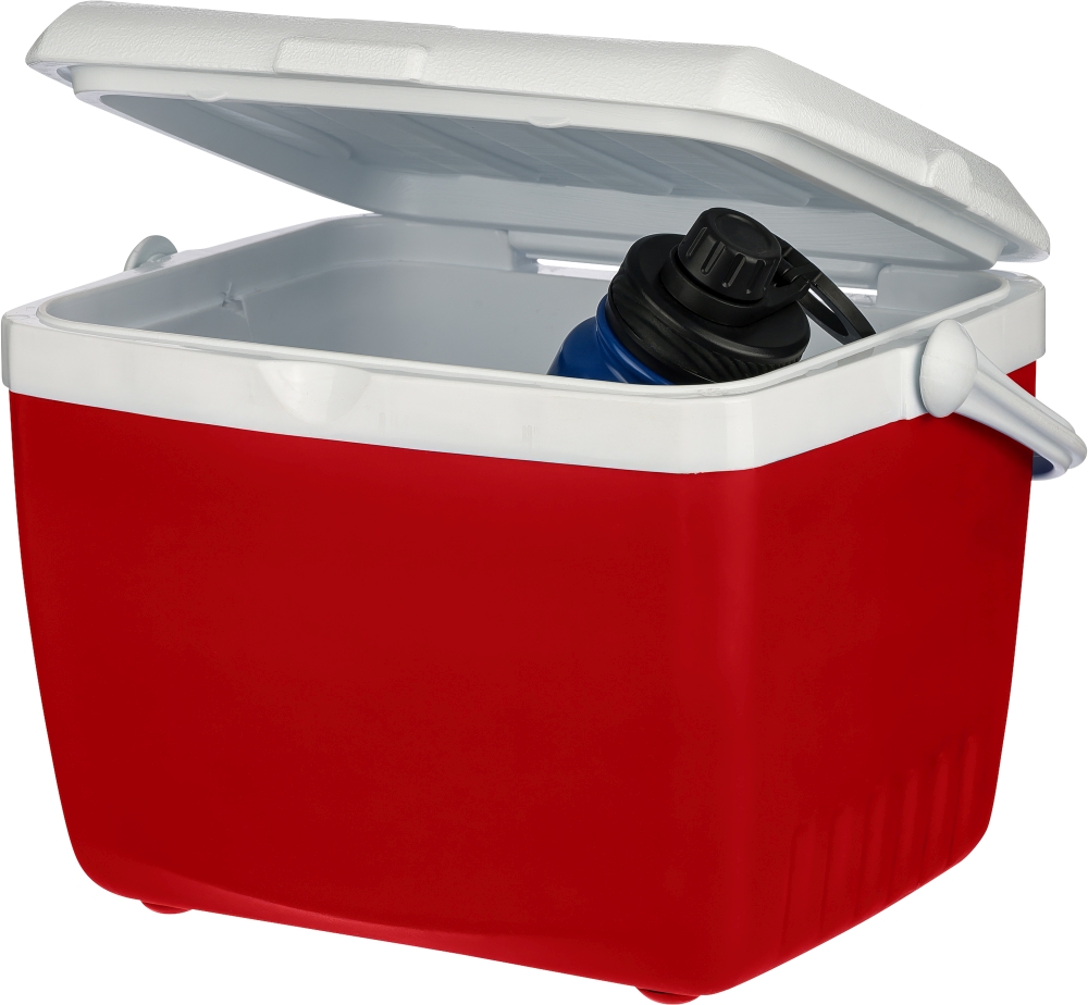 Chladicí box s objemem 13 litrů, vyrobený z vnitřní i vnější strany s víkem a izolační vrstvou. Vyroben z odolných, lehkých materiálů (PU/PE), které odolávají vlhkosti, chemikáliím a každodennímu opotřebení pro dlouhotrvající výkon. Udrží obsah chladný po dobu 8 až 12 hodin a teplý po dobu 4 až 5 hodin. Navržen pro diagonální umístění 1,5litrové lahve s limonádou. Vybaven robustní rukojetí pro snadnou přepravu. Rozměry: 25 x 33 cm