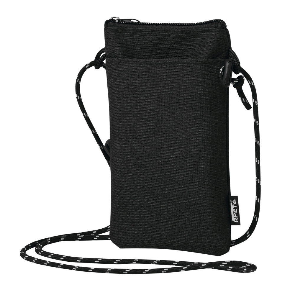 Crossbody taška na telefon: univerzální kapsa vhodná pro chytré telefony, hlavní přihrádka na zip, 1 vsuvná kapsa na přední straně, vyrobeno z recyklovaného polyesteru, s nastavitelným ramenním popruhem (délka cca 140 cm). Rozměry: 19 x 11 cm