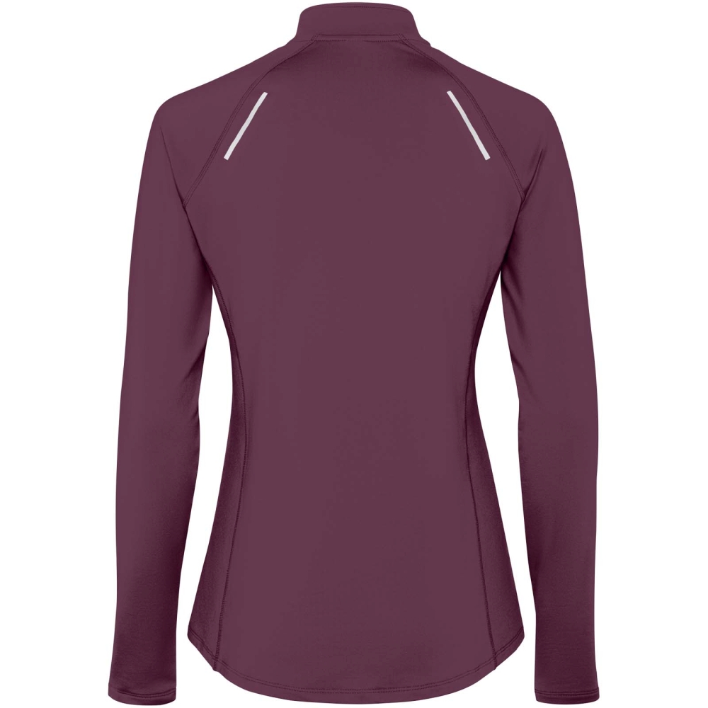 Dámská raglánová mikina s dlouhým rukávem. Slim-fit. Límec s obráceným designem na poloviční zip s reflexními detaily. Zesílené kryty švů. Manžety s otvory na palce. Reflexní detaily na zadní straně. Zadní lem je o něco delší než přední. Teplá kartáčovaná vnitřní tkanina.