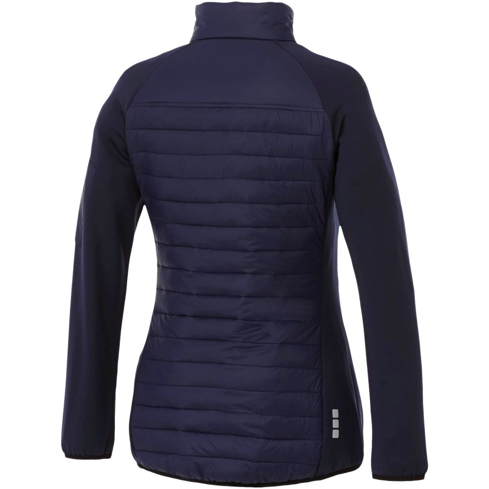 Dámská oteplená bunda, značka Elevate. Bunda má vnitřní bouřkovou chlopeň s ochranou brady, vnitřní port na sluchátka s průtahem na kabel, dlouhý zadní díl, elastické šňůrky v kontrastní barvě, lemování, reflexní detaily, přední zip s kontrastní páskou, táhla zipu s příjemným gripem, šatnové poutko, tvarované švy a zúžený pas pro zeštíhlující outfit. Nylonová tkanina 380T, vodoodpudivá a impregnovaná. 100% nylon, 38 g/m2, kontrastní materiál, zámková pletenina 94% polyester, 6% elastan, 245 g/m2, polstrování/výplň, napodobenina péřové izolace 100% polyester.