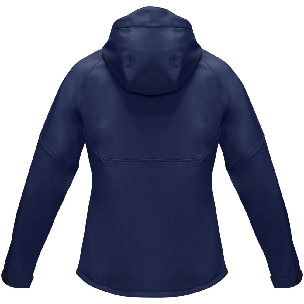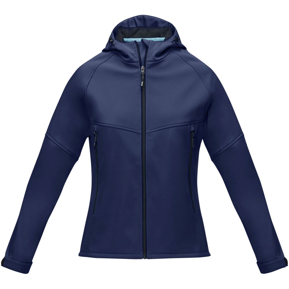 Dámská softshellová bunda značky ELEVATE s kapucí, vyrobená z GRS certifikovaného recyklovaného polyesteru. Voděodolnost 8000 mm a prodyšnost 2000 g/m2. Softshell je třívrstvý lepený: Tkanina, TPU, mikrofleece. Přední GRS certifikovaný reverzní zip. Přední kapsy s GRS certifikovaným reverzním zipem. GRS certifikovaná elastická stahovací šňůrka s nastavitelnou aretací šňůrky s certifikací GRS. Zúžený pas pro zeštíhlující outfit. Nastavitelné manžetky na suchý zip. Tkanina 80% GRS certifikovaný recyklovaný polyester, 18% Polyester, 2% Elastan, 280 g/m2. Microfleece 70% GRS certifikovaný recyklovaný polyester, 30% polyester.