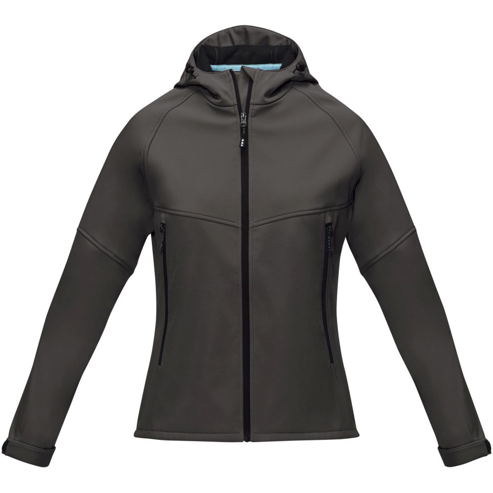 Dámská softshellová bunda značky ELEVATE s kapucí, vyrobená z GRS certifikovaného recyklovaného polyesteru. Voděodolnost 8000 mm a prodyšnost 2000 g/m2. Softshell je třívrstvý lepený: Tkanina, TPU, mikrofleece. Přední GRS certifikovaný reverzní zip. Přední kapsy s GRS certifikovaným reverzním zipem. GRS certifikovaná elastická stahovací šňůrka s nastavitelnou aretací šňůrky s certifikací GRS. Zúžený pas pro zeštíhlující outfit. Nastavitelné manžetky na suchý zip. Tkanina 80% GRS certifikovaný recyklovaný polyester, 18% Polyester, 2% Elastan, 280 g/m2. Microfleece 70% GRS certifikovaný recyklovaný polyester, 30% polyester.