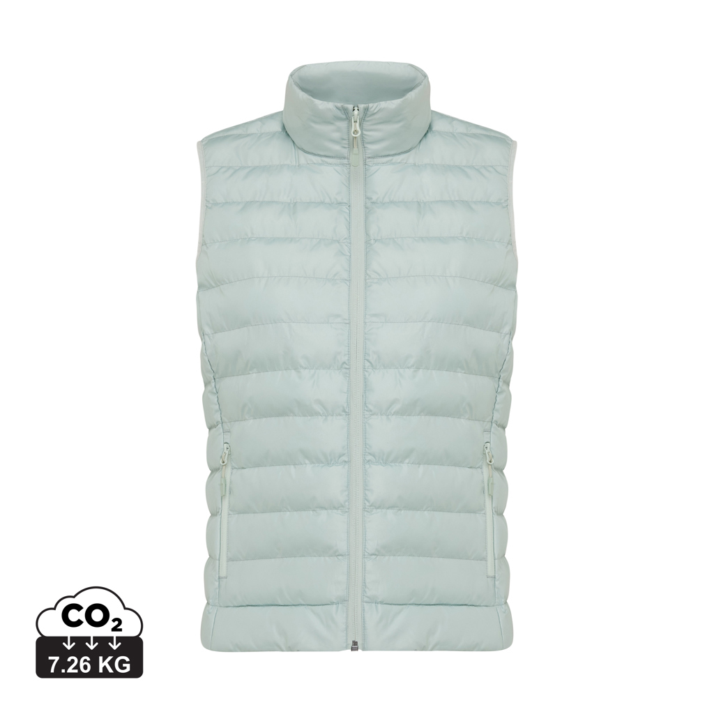Dámská vesta vyrobená ze 100 % post-consumer recyklovaného polyesteru. Perlová výplň ze 100 % recyklovaného polyesteru. Oboustranný zip na přední straně, kapsy na zip po stranách. Tahače zipů v ladících odstínech. Průramky s elastickým lemováním s kompletně čistými švy. Vodě repelentní impregnace bez obsahu fluorinu/PFAS. Obsah recyklovaných materiálů je garantován díky využití technologie AWARE™, která kombinuje možnost skenování materiálu a technologii blockchain. Každý produkt Iqoniq vlastní unikátní štítek s QR kódem, který odkazuje na příslušný digitální pas produktu. 2 % z výtěžku každého prodaného kusu je darováno na Water.org. Certifikováno OEKO-TEX® STANDARD 100. Dostupné i v pánské variantě.