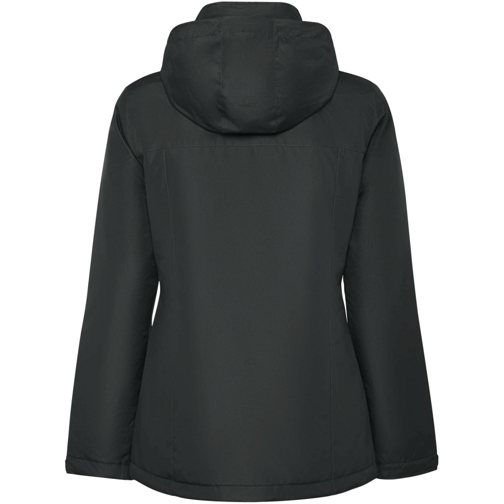 Nepromokavá zateplená parka pro ženy. Slim-fit. Vysoký límec a zapínání na suchý zip. Praktická skládací kapuce. Centrální zip ladící s klopou. Boční kapsy se zipem a pevnou klopou. Vnitřní kapsa se zapínáním na suchý zip. Nastavitelné manžety s poutkem na opasek. Možnost přístupu k výztuhám na zádech a levé části hrudi.