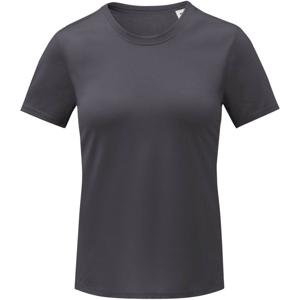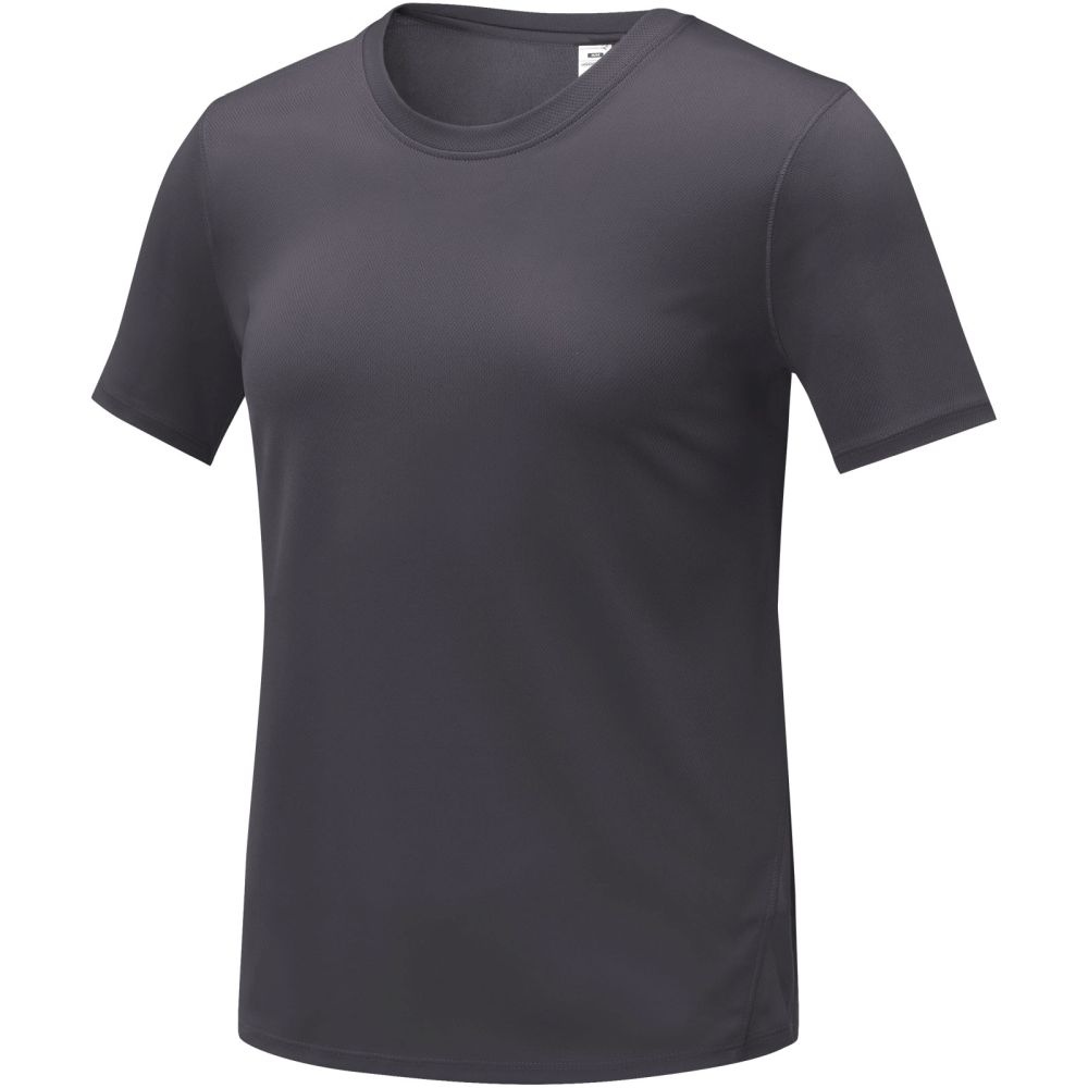 Dámské funkční tričko s krátkým rukávem, značka Elevate. Triko má odtrhávací štítek pro větší pohodlí, límec ve shodné tkanině, kulatý výstřih, přední boční šev s úzkým plochým stehováním. Síťovina s úpravou Cool Fit 100% polyester, 105 g/m2.