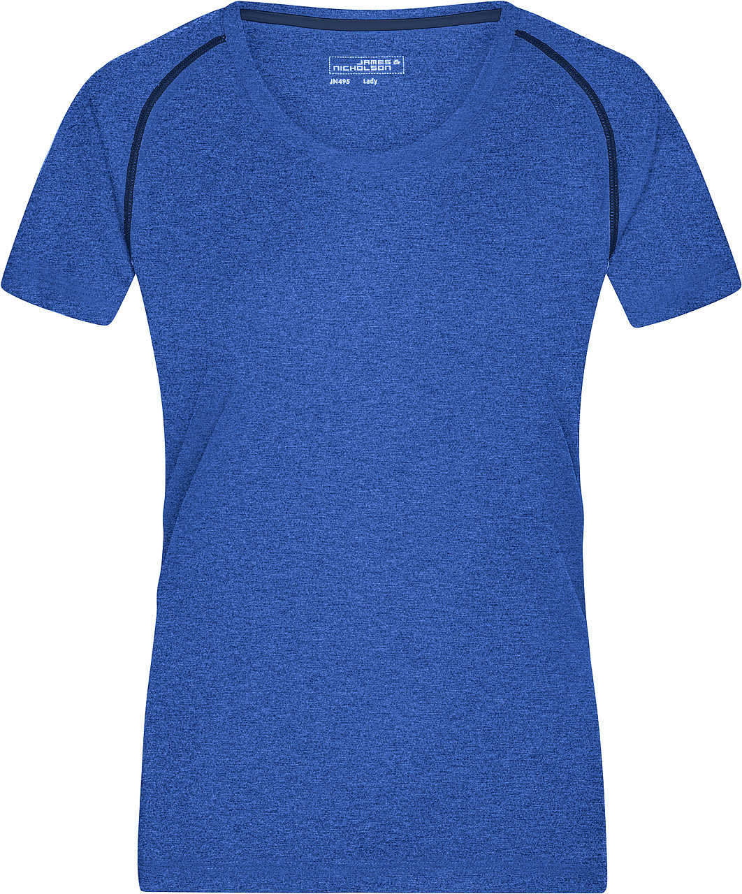 JAMES & NICHOLSON SPORTS T-SHIRT WOMEN. Dámské sportovní tričko s krátkými raglánovými rukávy a kulatým výstřihem uplým u krku, lehce vypasovaný střih. Kolem ramen jsou ploché kontrastní švy. Materiál reguluje vlhkost a je rychleschnoucí. Vyrobeno ze 100% polyesteru, 130g. Kartonové množství v ks: 50