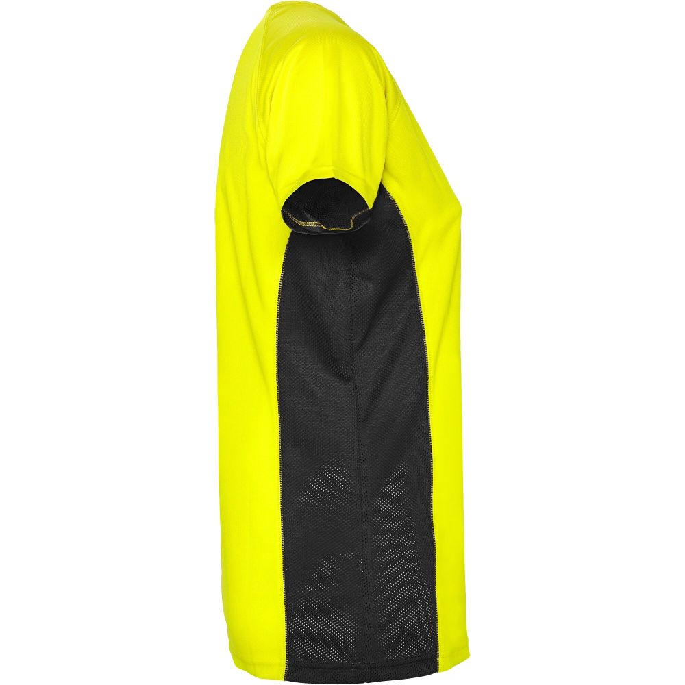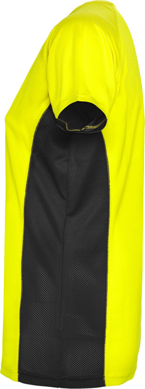 Technická a prodyšná látka. Kombinace dvou polyesterových látek: Hlavní látka „ptačí oko“, boční panely a vnitřní rukáv z mikroperforované látky. Kulatý výstřih s vnitřními zesílenými krytými švy. Odnímatelný štítek. Materiál: 100% polyester
