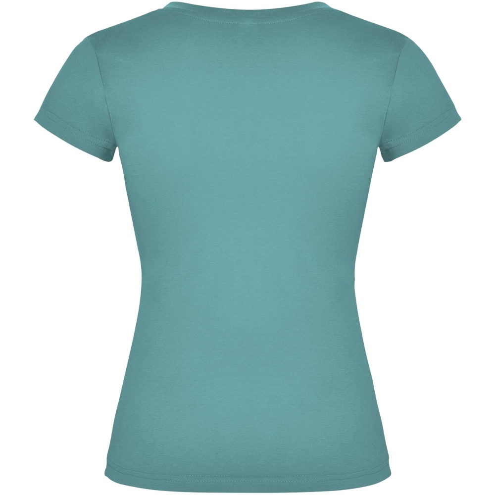Dámské tričko s krátkým rukávem a výstřihem do V s úpravou 1x1 žebrování. Úzký střih s bočními švy. Odnímatelný štítek.