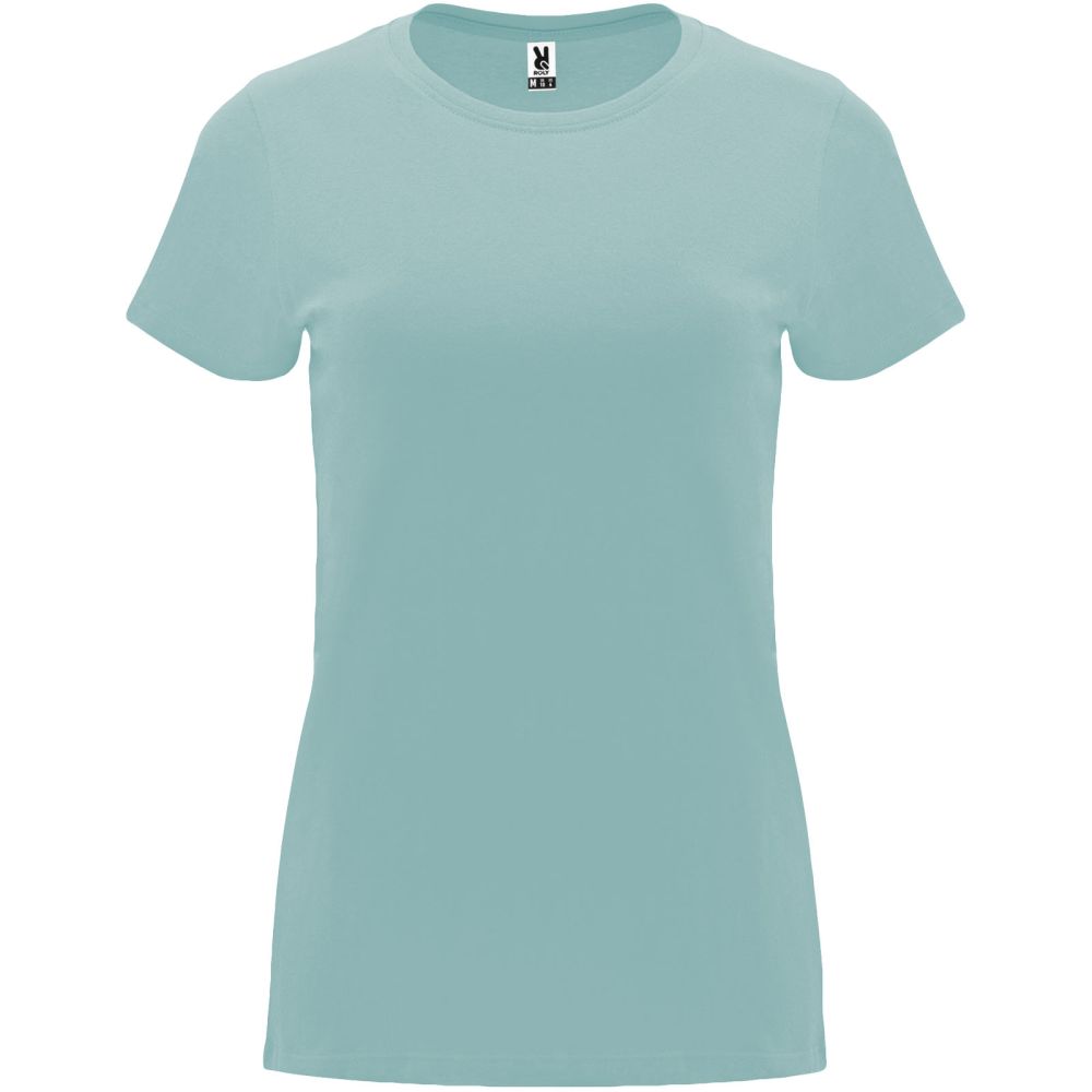 Dámské tričko s krátkým rukávem přiléhavého střihu. Žebrovaný výstřih ke krku. Zpevněné skryté švy na průkrčníku. Sundávací štítek. Materiál: 100% bavlna