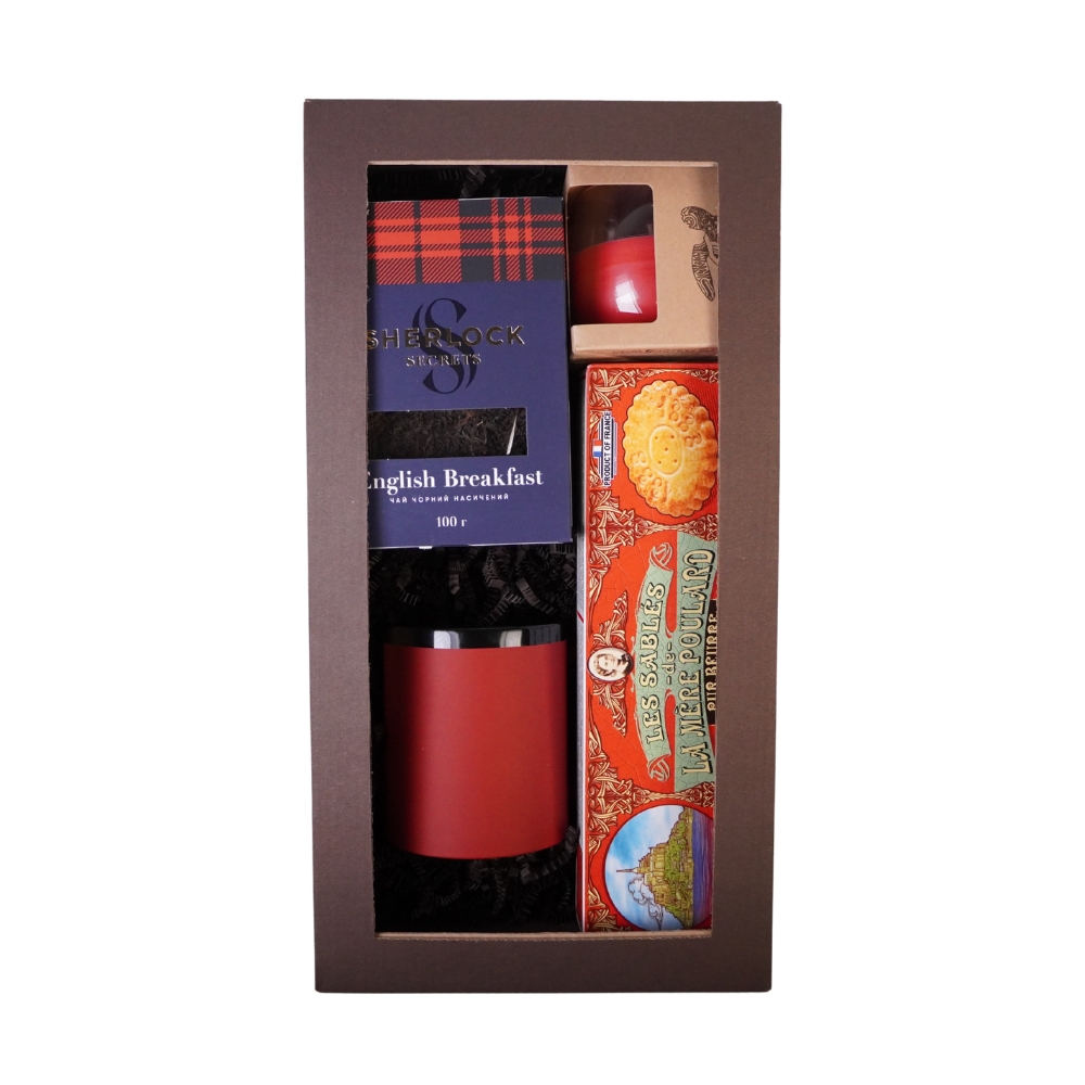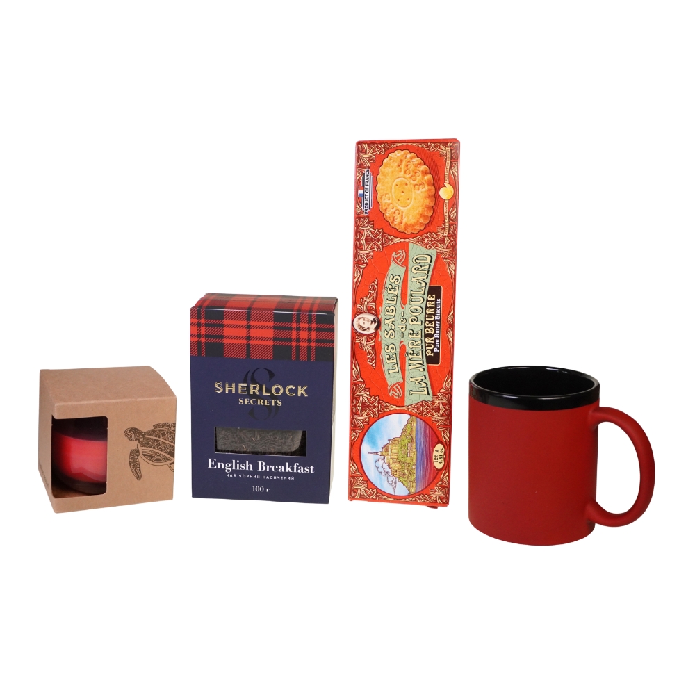Sada obsahuje: - francouzské sušenky - hrnek červený - svíčka červená - Černý čaj SHERLOCK SECRETS English Breakfast Hrnek je možné laserovat. Sada je balena v dárkové krabici s víkem, která je vystlána barevnou papírovou výplní. Do krabice lze vložit komplimentku. Cena nezahrnuje branding hrnku a speciální balení. Náhrada produktů vyhrazena dle dostupnosti. Termín dodání: 10-14 dnů. Minimální odběr: 12 kusů. Rozměry: 18 x 34 x 10 cm.