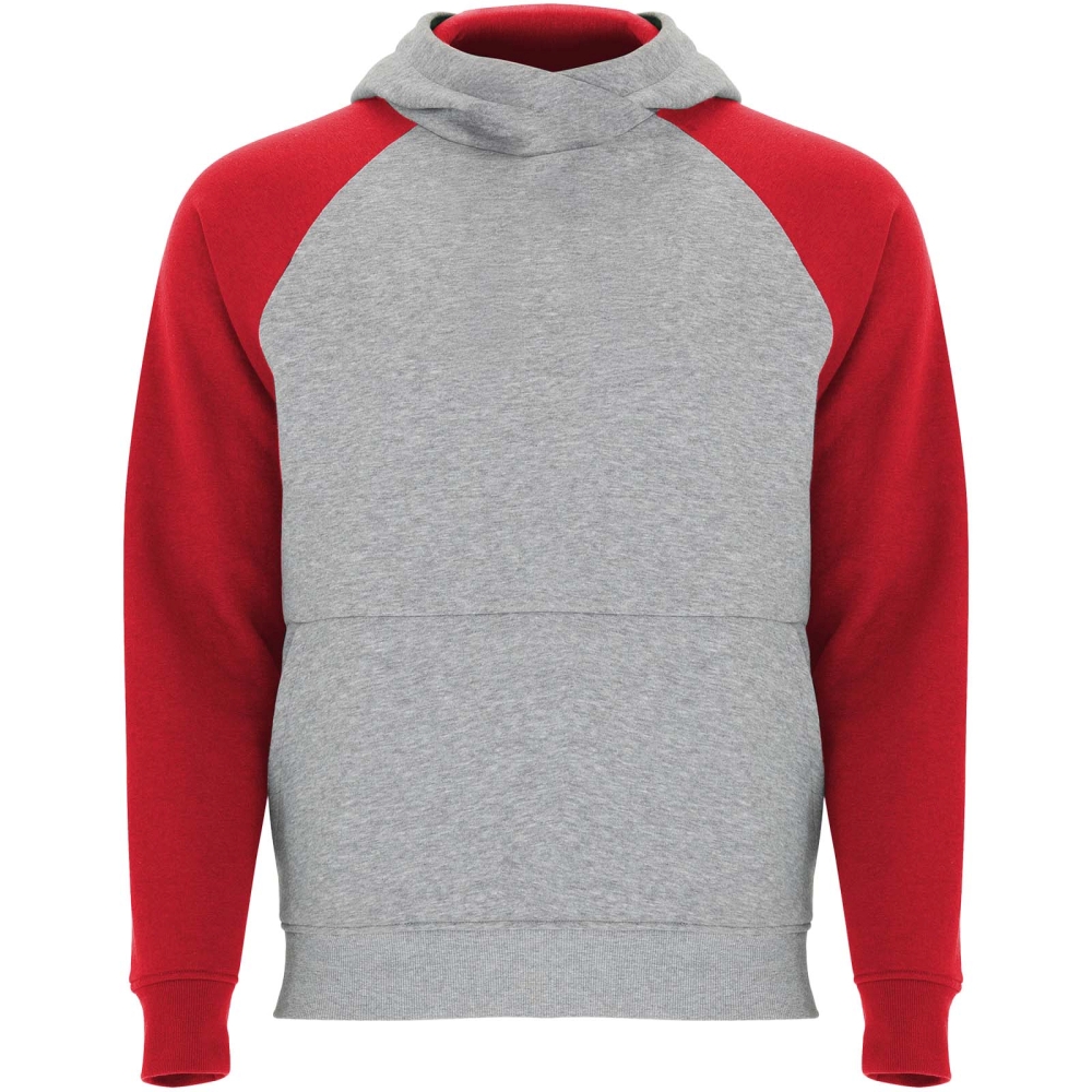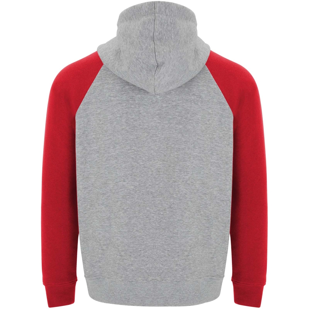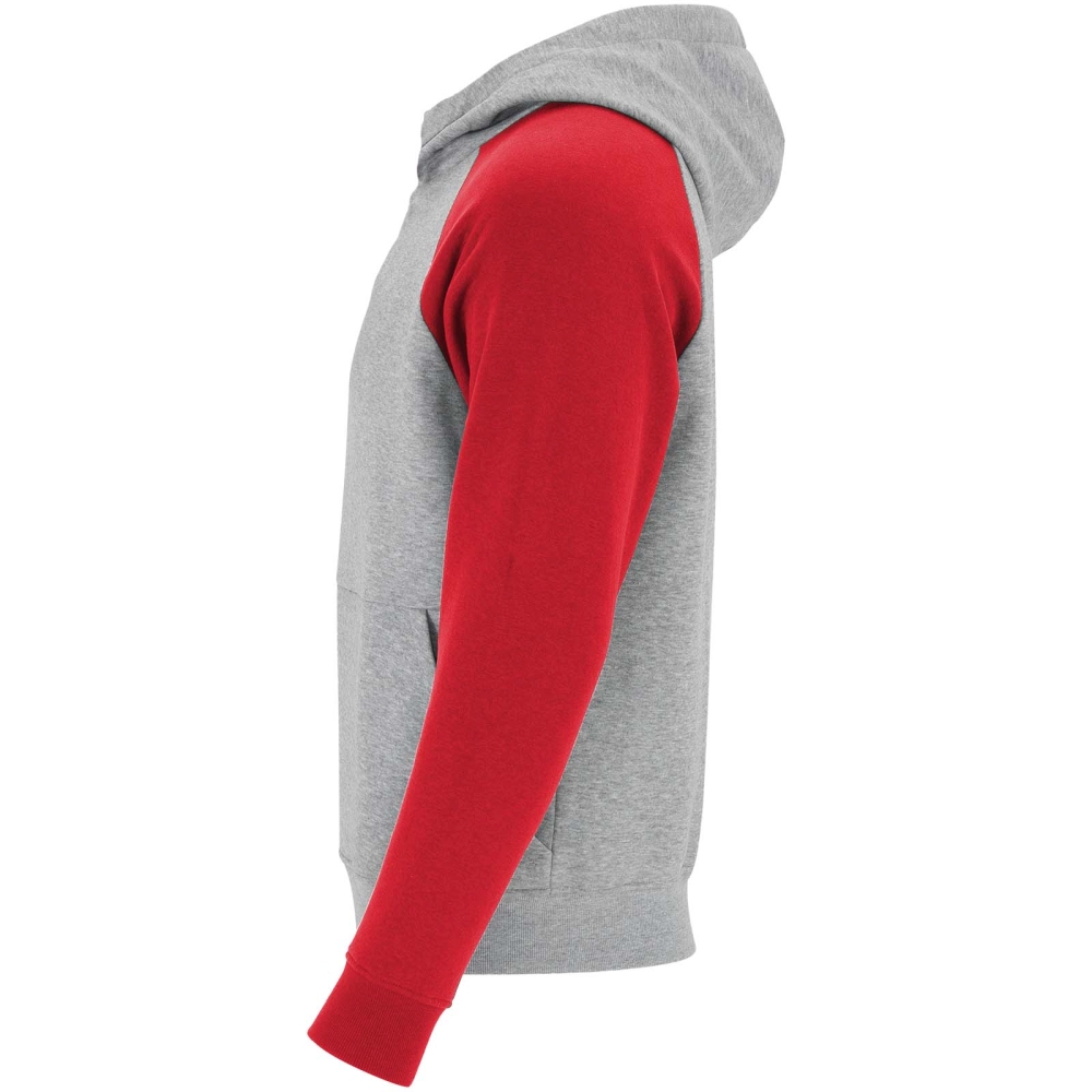 Dvoubarevná unisex mikina s kapucí. Kapuce se zkříženým límcem a kovovými očky. Kontrastní vnitřní kapuce, stahovací šňůrka a raglánové rukávy. Klokaní kapsa. Manžety a lem z elastanového žebrového úpletu 1 × 1. Odnímatelný štítek.