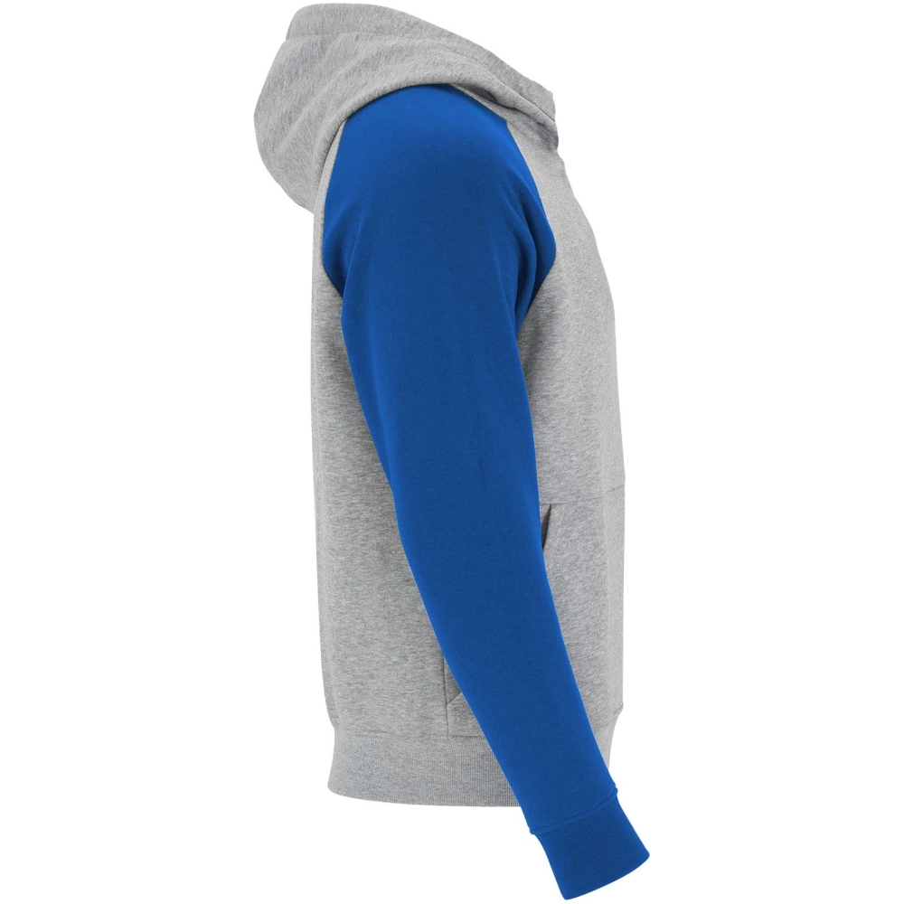Dvoubarevná unisex mikina s kapucí. Kapuce se zkříženým límcem a kovovými očky. Kontrastní vnitřní kapuce, stahovací šňůrka a raglánové rukávy. Klokaní kapsa. Manžety a lem z elastanového žebrového úpletu 1 × 1. Odnímatelný štítek.
