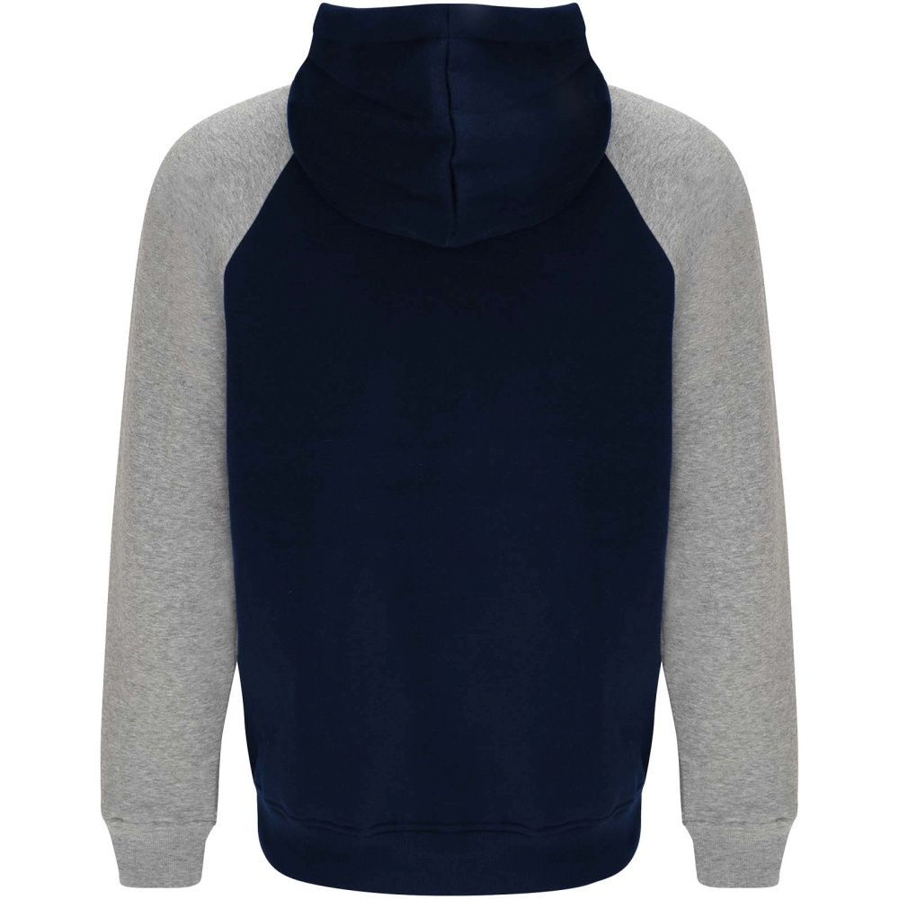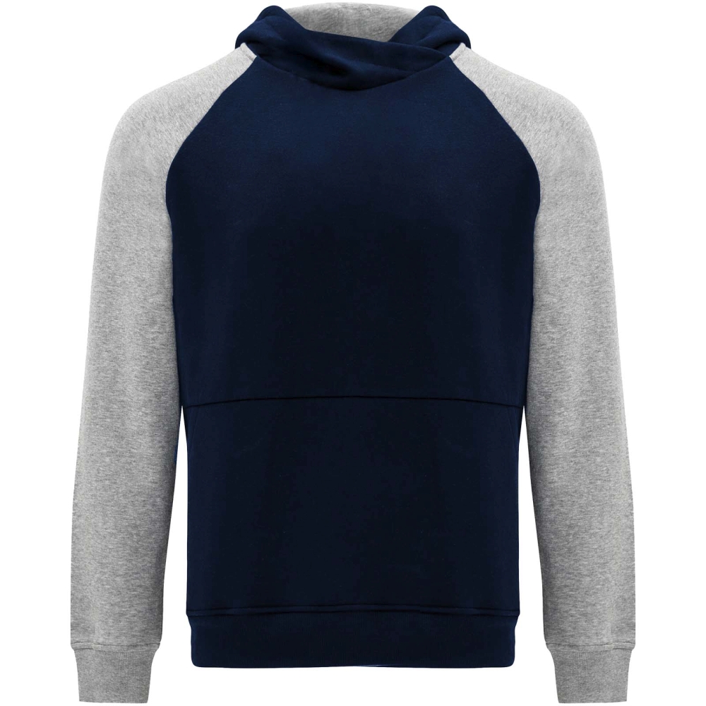Dvoubarevná unisex mikina s kapucí. Kapuce se zkříženým límcem a kovovými očky. Kontrastní vnitřní kapuce, stahovací šňůrka a raglánové rukávy. Klokaní kapsa. Manžety a lem z elastanového žebrového úpletu 1 × 1. Odnímatelný štítek.
