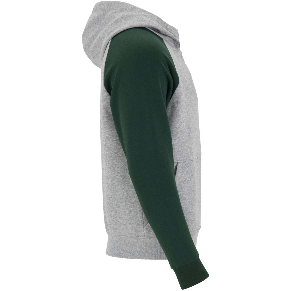 Dvoubarevná unisex mikina s kapucí. Kapuce se zkříženým límcem a kovovými očky. Kontrastní vnitřní kapuce, stahovací šňůrka a raglánové rukávy. Klokaní kapsa. Manžety a lem z elastanového žebrového úpletu 1 × 1. Odnímatelný štítek.