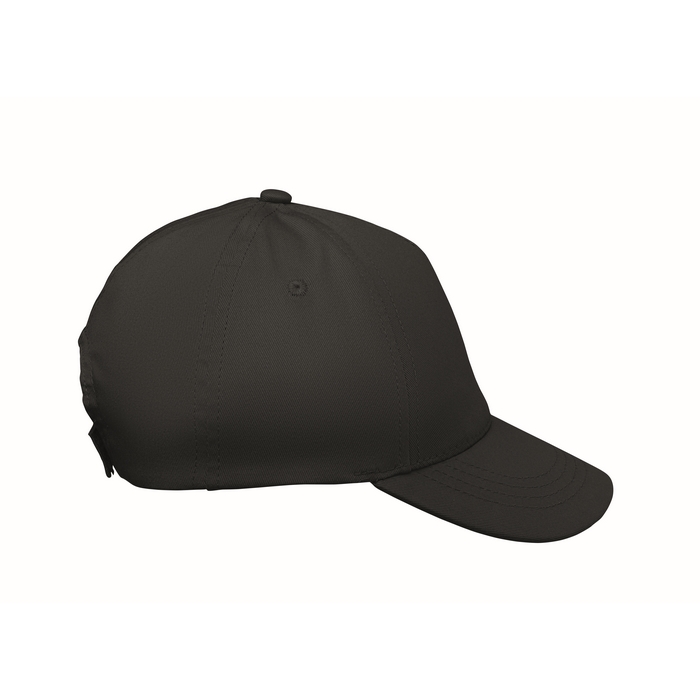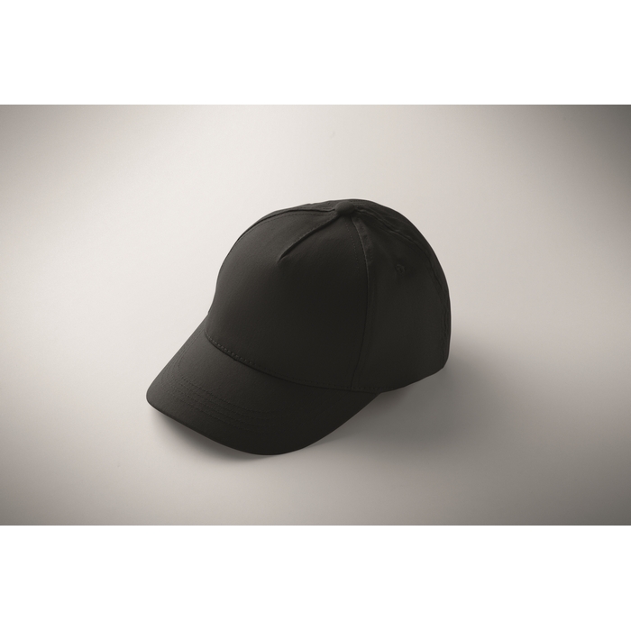 Pětipanelová dětská kšiltovka z bavlněného 180g kepru s nastavitelným zapínáním na suchý zip pro pohodlné nošení. Rozměry: 54 cm