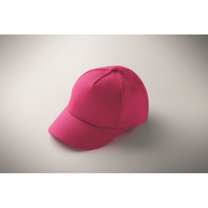 Pětipanelová dětská kšiltovka z bavlněného 180g kepru s nastavitelným zapínáním na suchý zip pro pohodlné nošení. Rozměry: 54 cm