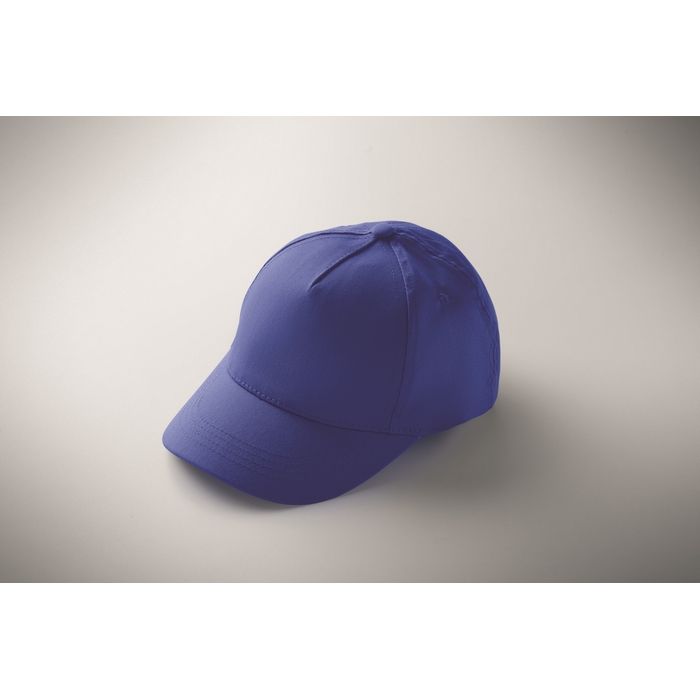 Pětipanelová dětská kšiltovka z bavlněného 180g kepru s nastavitelným zapínáním na suchý zip pro pohodlné nošení. Rozměry: 54 cm