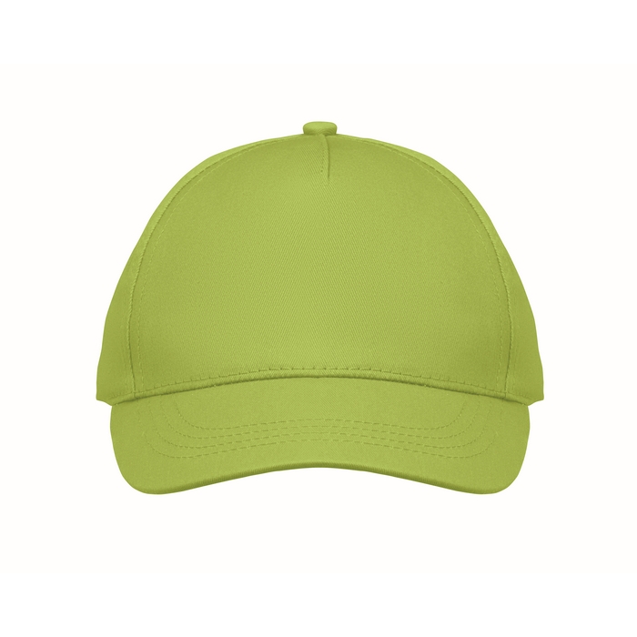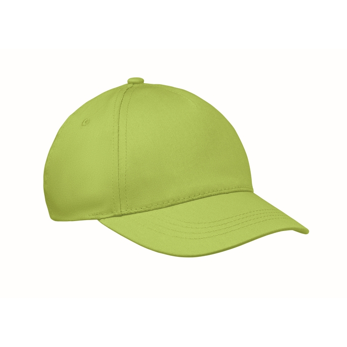 Pětipanelová dětská kšiltovka z bavlněného 180g kepru s nastavitelným zapínáním na suchý zip pro pohodlné nošení. Rozměry: 54 cm