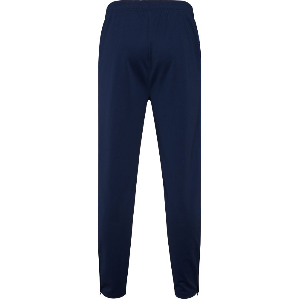 Tepláková souprava z lehké a elastické látky. Bunda s kontrastní barvou a našitými lemy na hrudi. Vysoký límec s kontrastními švy. Středový přední zip. Boční kapsy. 2 × 2 žebrované manžety a pas. Kalhoty s elastickým pasem a stahovací šňůrkou. Kontrastní boční díl s našitým lemem. Lem na zip.