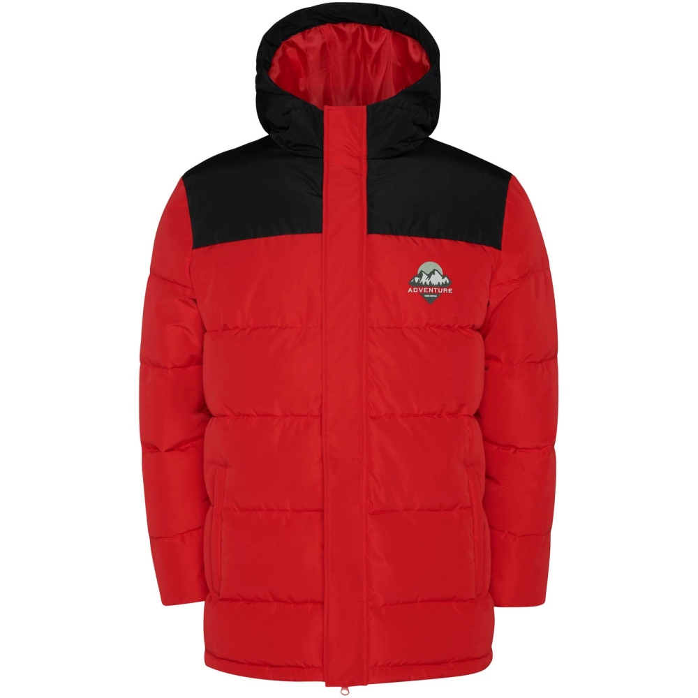 Polstrovaná bunda s kapucí. Přední zip krytý légou. Chránič brady. Dvě boční kapsy na zip. Elastické manžety.