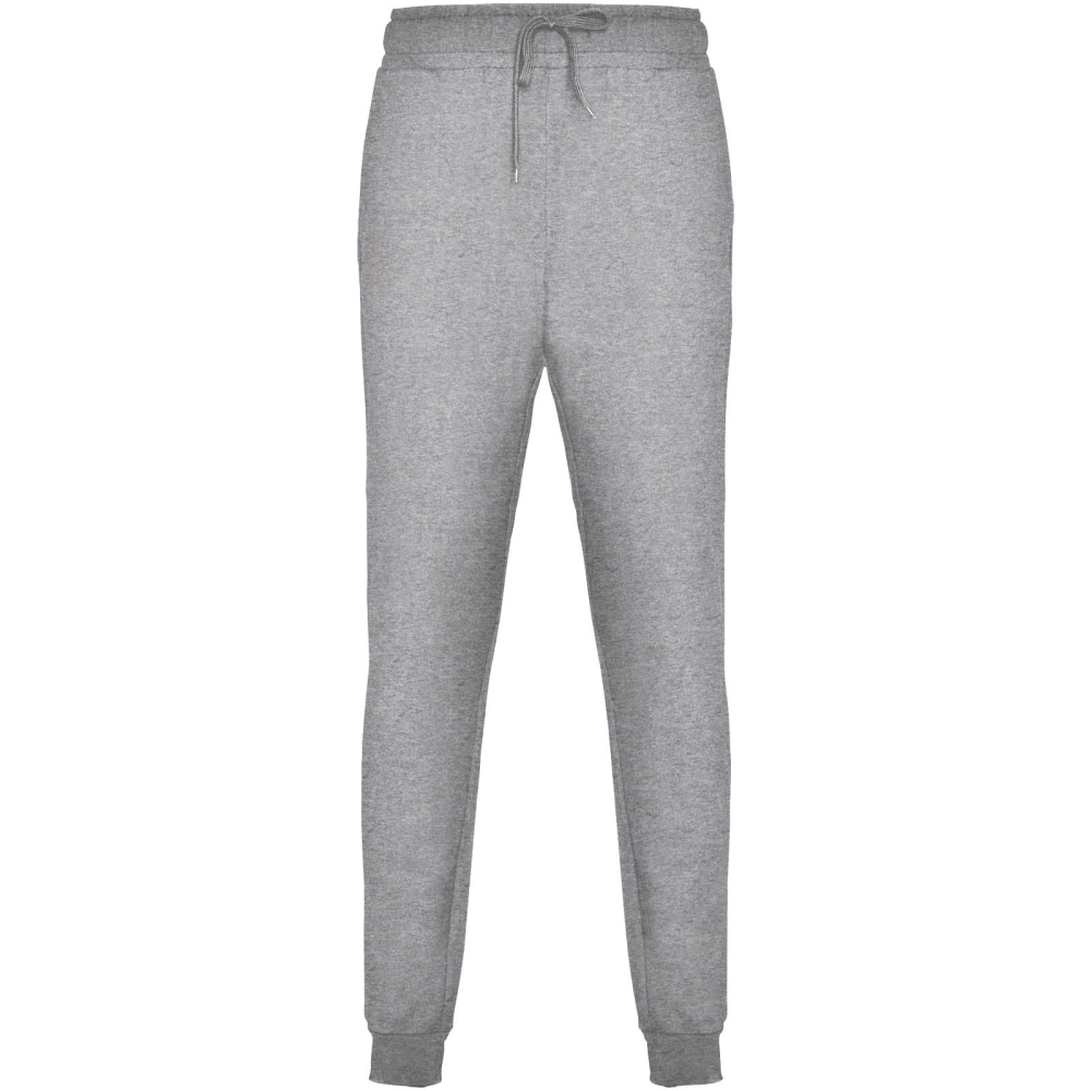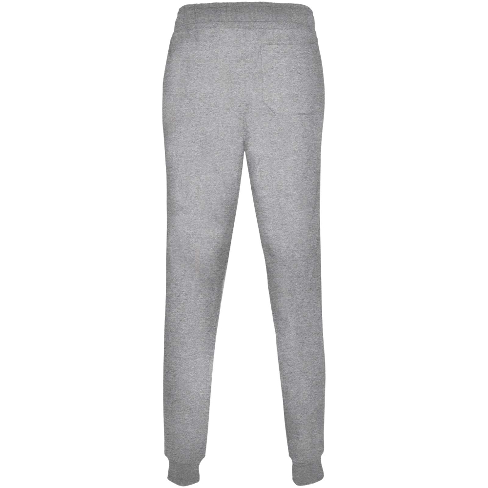 Sportovní kalhoty se širokým nastavitelným pasem, stahovací šňůrkou, přiléhavými kotníkovými manžetami, zesílenými švy, žebrovanými bočními kapsami a zadní rohovou kapsou s prošitým průhledem. Odnímatelný štítek.