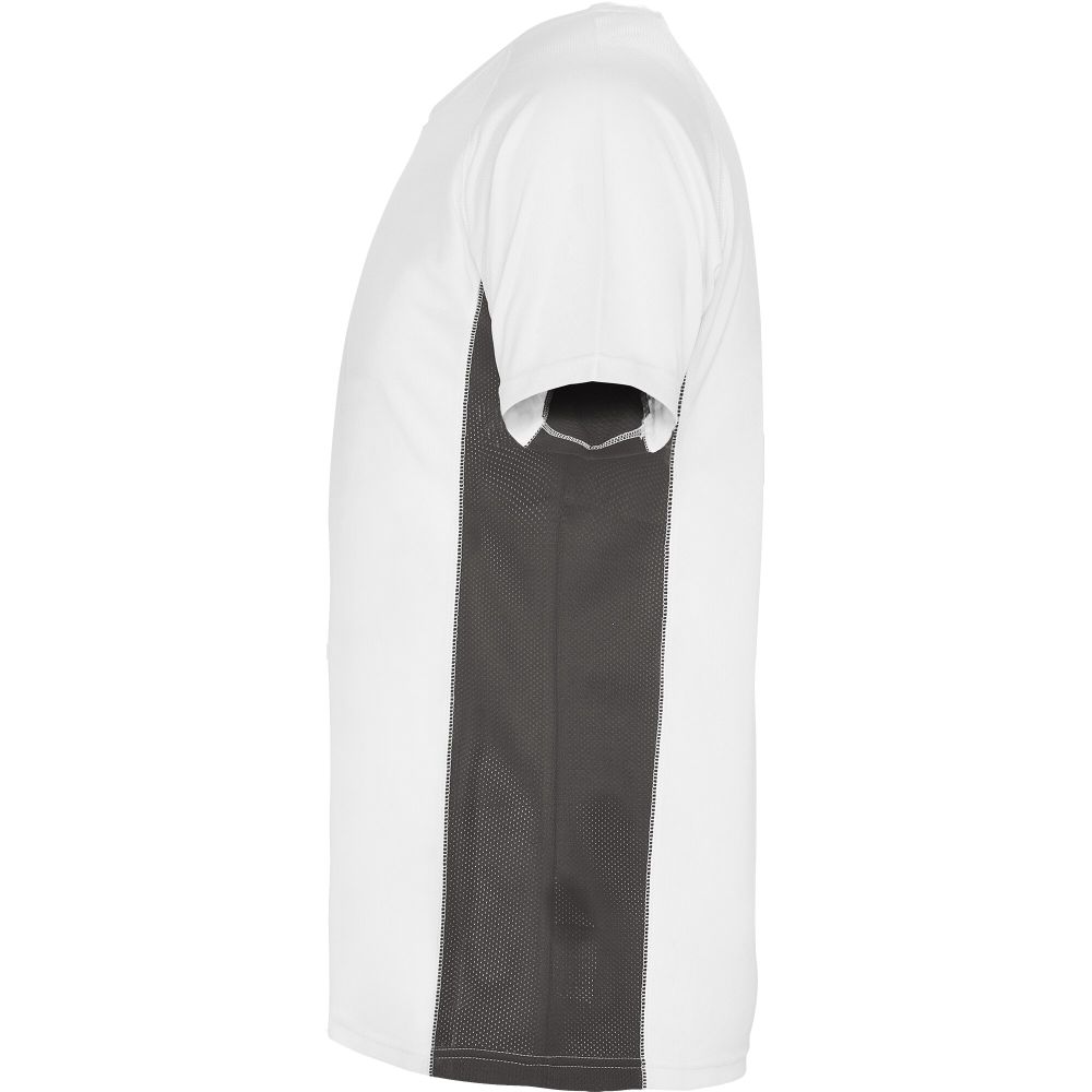 Technická a prodyšná látka. Kombinace dvou polyesterových látek: Hlavní látka „ptačí oko“, boční panely a vnitřní rukáv z mikroperforované látky. Kulatý výstřih s vnitřními zesílenými krytými švy. Odnímatelný štítek. Materiál: 100% polyester