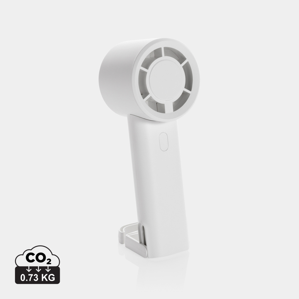 Přenosný větráček vyrobený z recyklovaného plastu je kompaktním a univerzálním pomocníkem, který vám zajistí osvěžení kdekoli. Elegantní černé tělo z 35 % recyklovaného ABS plastu ukrývá dobíjecí Li-ion baterii s kapacitou 1200 mAh, která poskytuje až 6 hodin provozu po pouhých 3 hodinách nabíjeníprostřednictvím přiloženého 30cm USB-A – USB-C kabelu z černého TPE materiálu. Ventilátor nabízí tři úrovně rychlosti a výsuvný háček, který zároveň slouží jako stojánek, takže je ideální na pracovní stůl, noční stolek i na cesty. Tělo ventilátoru je vyrobeno z recyklovaného ABS plastu. Ventilátor je bez PVC a je balen v krabičce z kraftového papíru. Max. výkon: 2 W | Vstupní proud: 5 V / 1 A.Rozměry: 5.7 x 5 x 17 cm